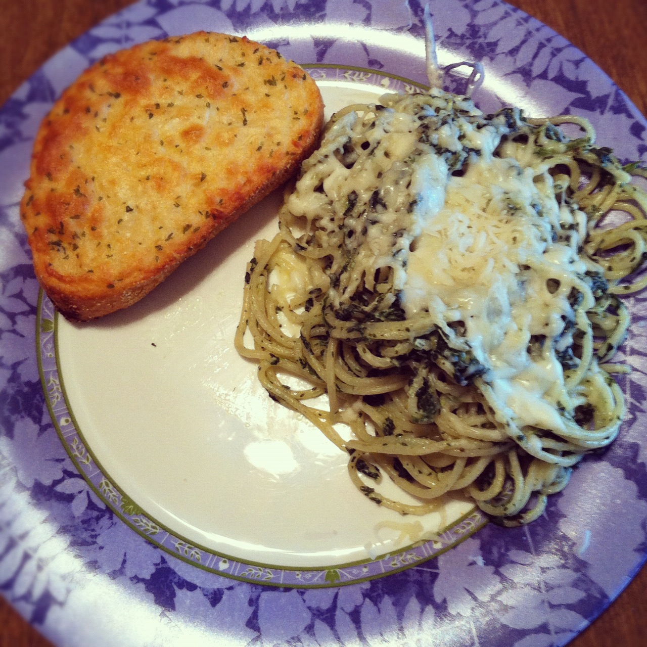 Last night I made a super fast meal for me and Jake, Creamy Spinach Pasta mmmmm!