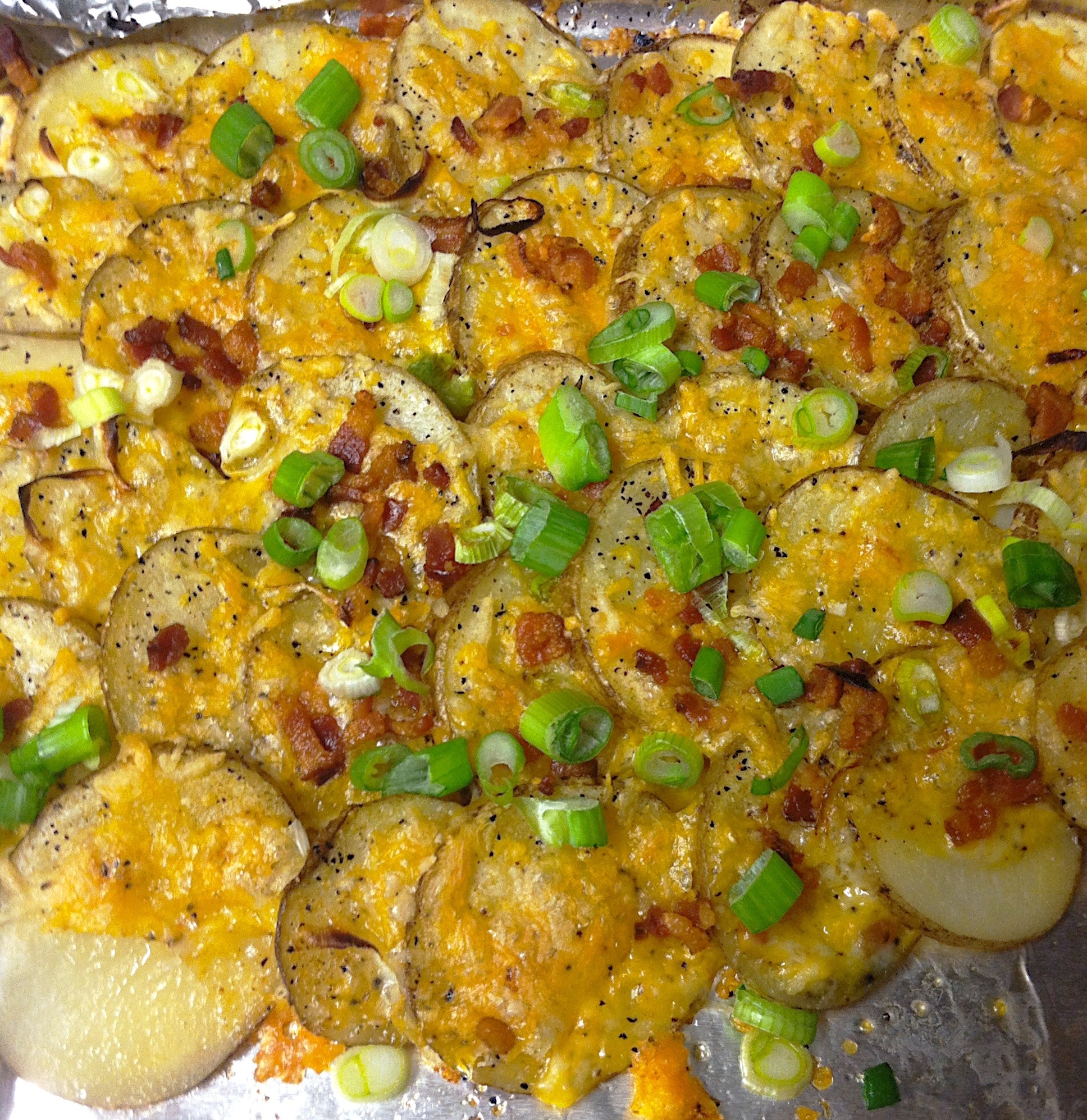 This was a very quick and easy recipe to make! I saw it on Pinterest (duh) and was just craving it for some reason. I had some extra potatoes laying around (I don’t typically have white potatoes stocked) so it was fate! Boiling the potatoes first really helped them be fully cooked without cooking for so long in the oven and burning all the ingredients on top. It was kind of unhealthier than the food I typically make, but you gots ta do that sometimes 🙂