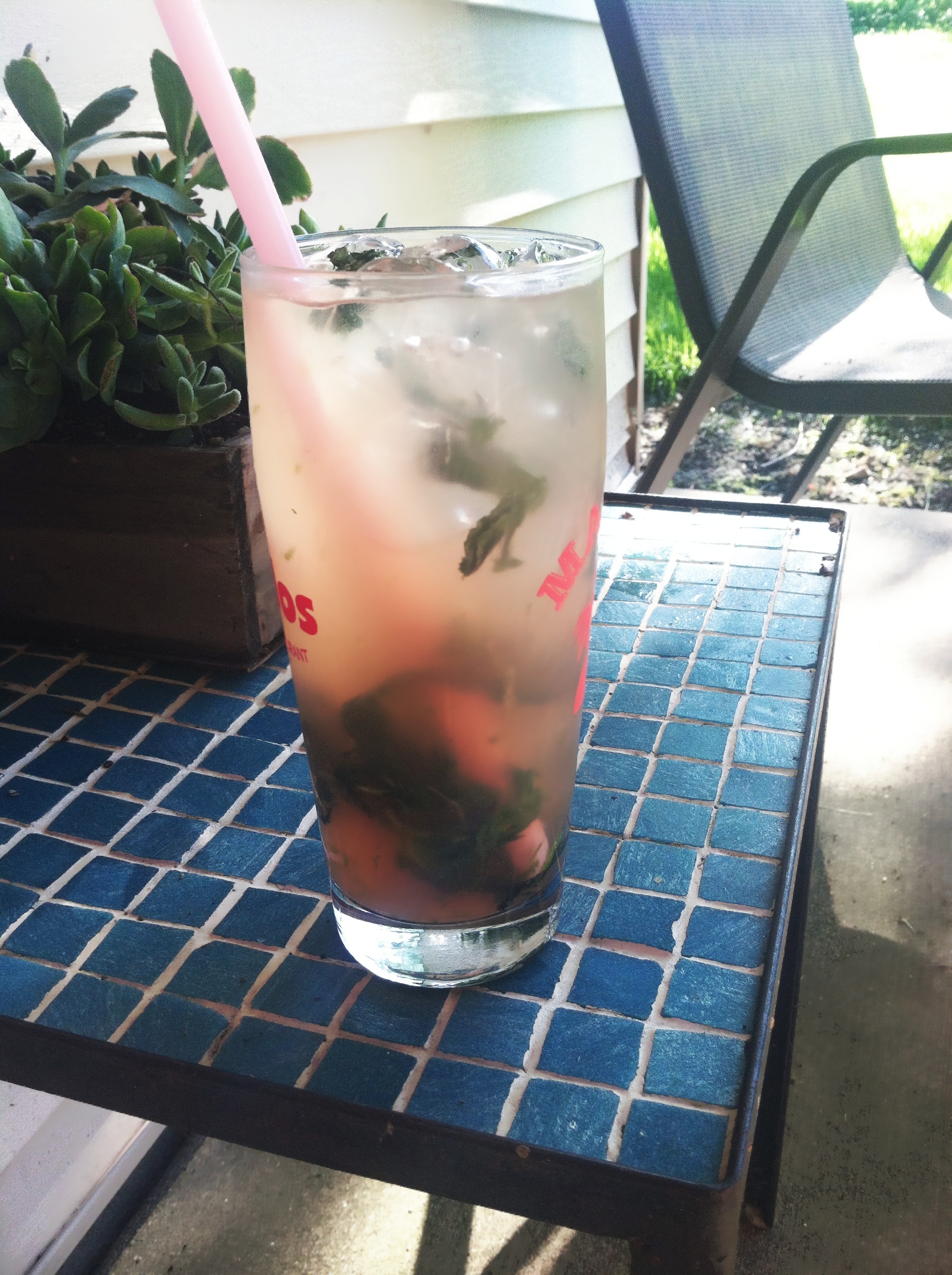 Mint- What else do you do with mint besides make…..MOJITOS! 🙂 And I made special ones. Rhubarb Mojitos. They turned out really good and to my surprise, you can really taste the rhubarb! See below.
