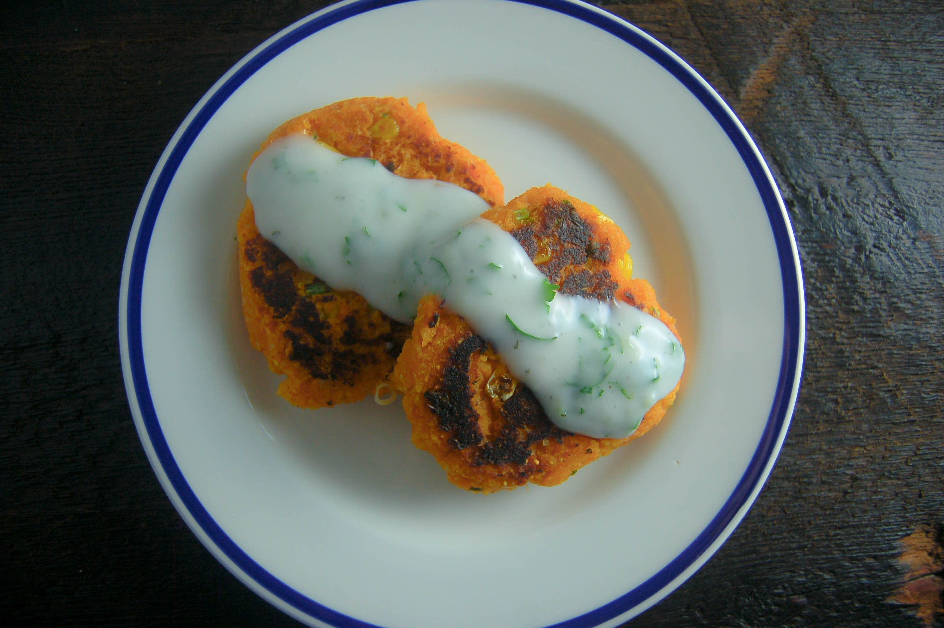 Sweet Potato Cakes w/ Garlic Dipping Sauce
