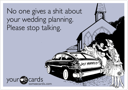 There are LOTS of funny ecards for weddings/planning out there. Too many funny ones that I have to share a few- enjoy!