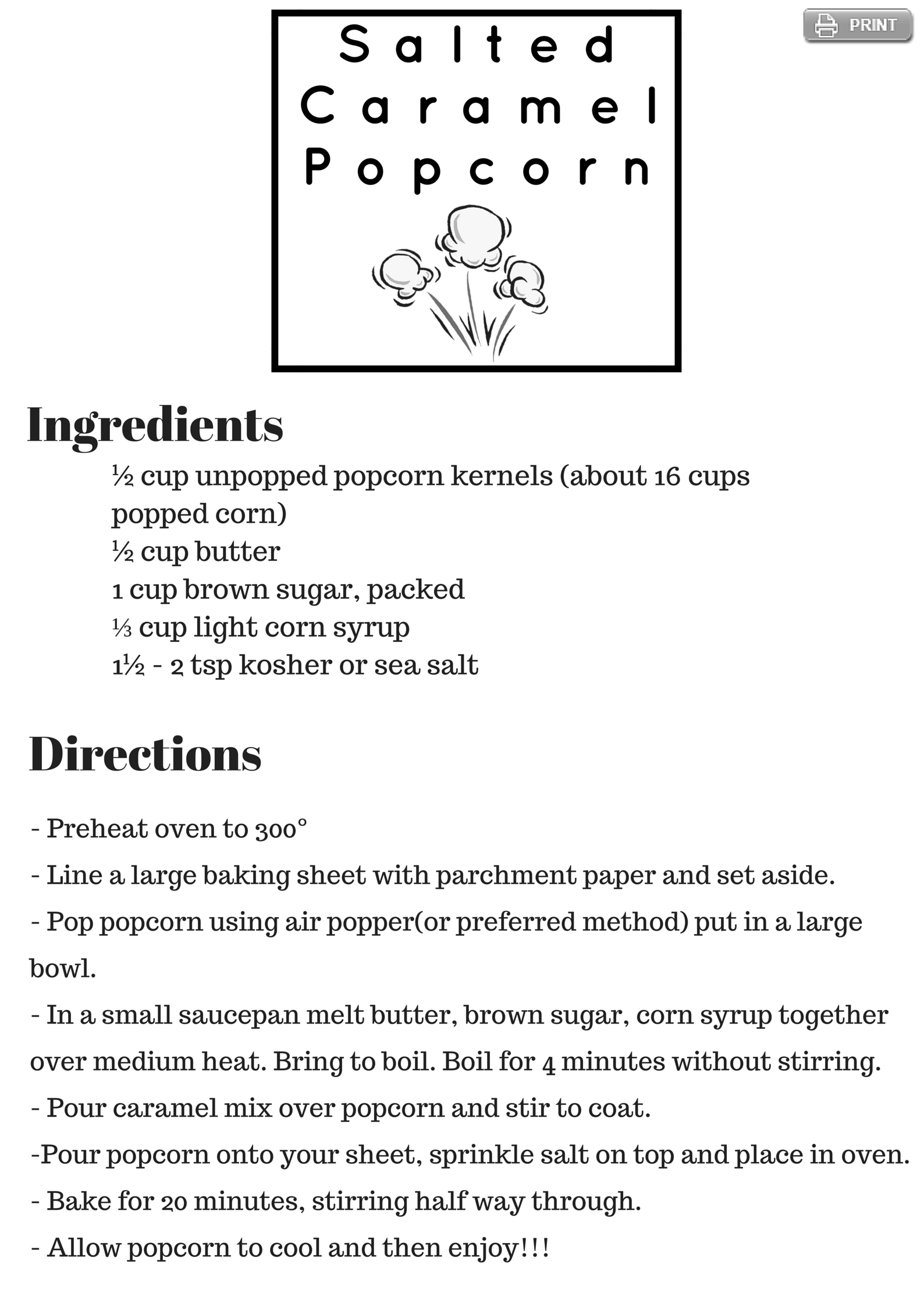 1/2 – 1cup of un-popped popcorn (measure it un-popped and then pop it)