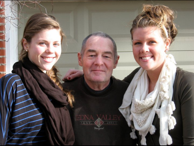 my sister, my dad, and me after his 1st stem cell transplant he lost his hair and a couple inches of height! 🙂