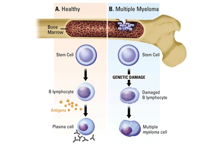 This is a little technical but I feel this is important. Multiple Myeloma is a cancer formed by malignant(bad) plasma cells. Plasma cells are found in the bone marrow and are a very important part of our immune system.